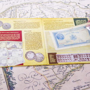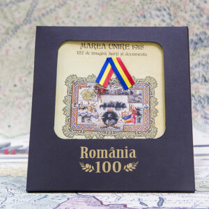 reproducerea pe canvas (pânză tipografică) a 18 hărți vechi, cu fostele provincii istorice de pe actualul teritoriu al României, precum şi cu Europa şi Lumea. Hărțile datează din 1566 și până în 1929 și sunt ambalate sul, într-o cutie de carton elegantă. Vezi mai jos.